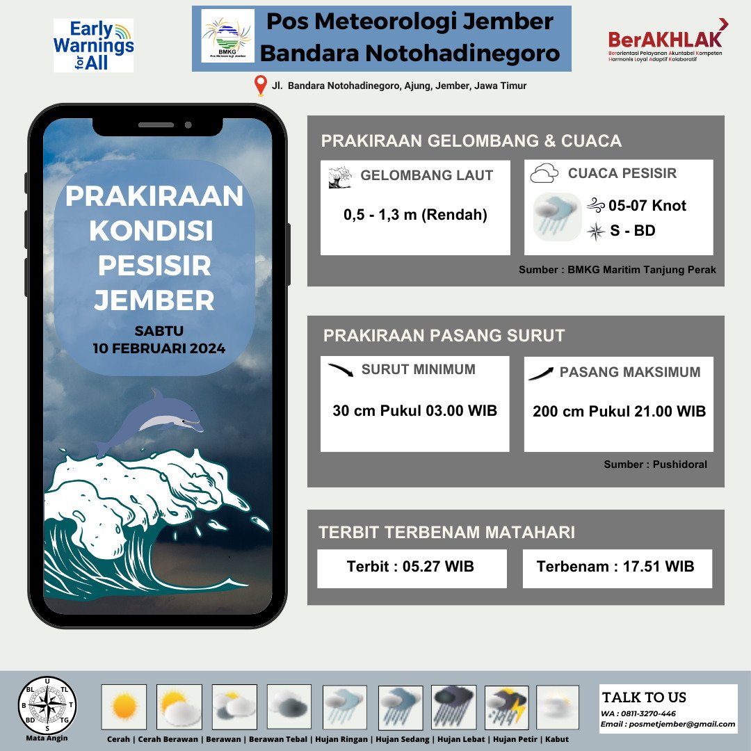 JEMBER – BMKG Juanda Surabaya memperkirakan hujan bakal melanda Kabupaten Jember pada Sabtu, 10 Februari 2024, besok.
