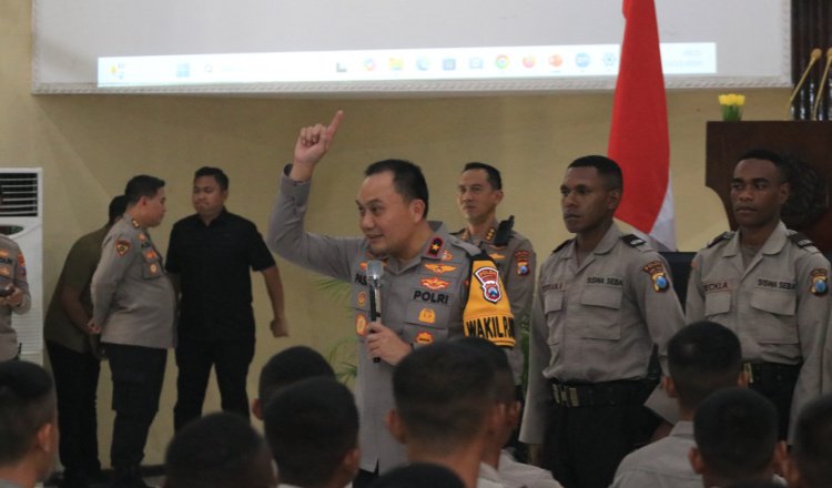 MOJOKERTO – Wakapolda Jawa Timur, Brigjen Pol Pasma Royce, memberikan pembekalan pengantar tugas kepada 900 siswa Diktuk Bintara Polri Gelombang II/2024 di Sekolah Kepolisian Negara (SPN) Polda Jatim, Jumat (13/12/2024).